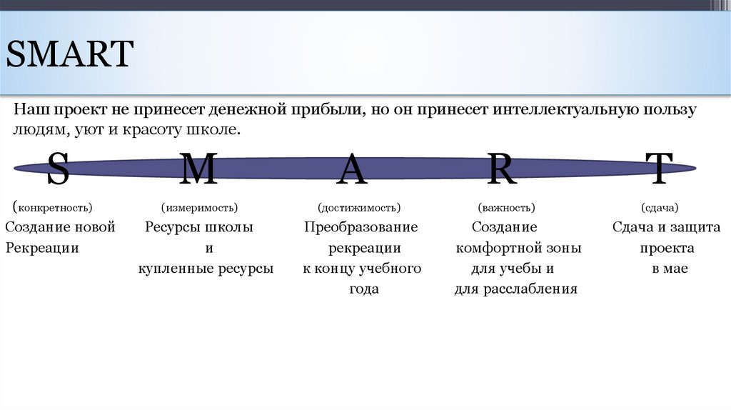 SMARTНаш проект не принесет денежной прибыли, но он принесет интеллектуальную пользу