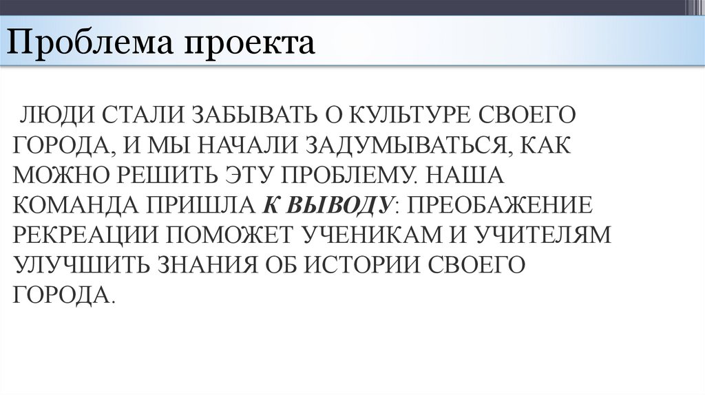 Проблема проектаЛЮДИ СТАЛИ ЗАБЫВАТЬ О КУЛЬТУРЕ СВОЕГО