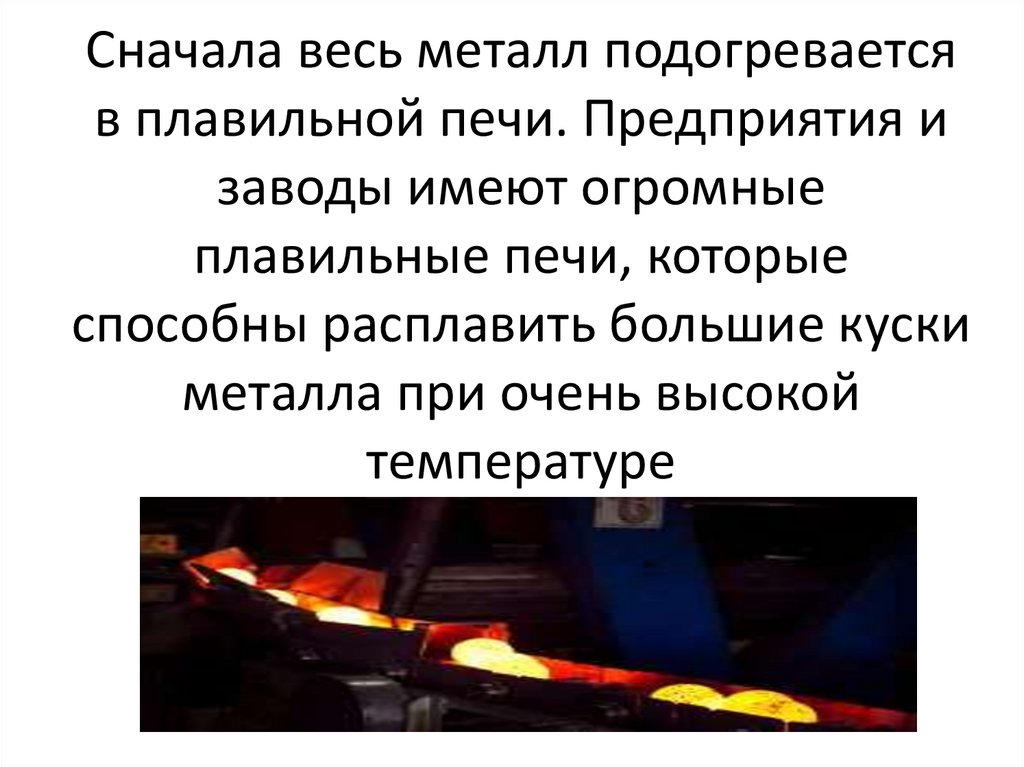 Сначала весь металл подогреваетсяв плавильной печи. Предприятия и
