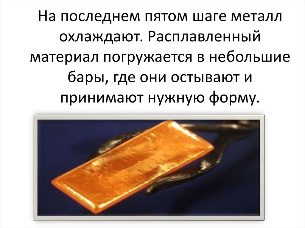 На последнем пятом шаге металлохлаждают. Расплавленный