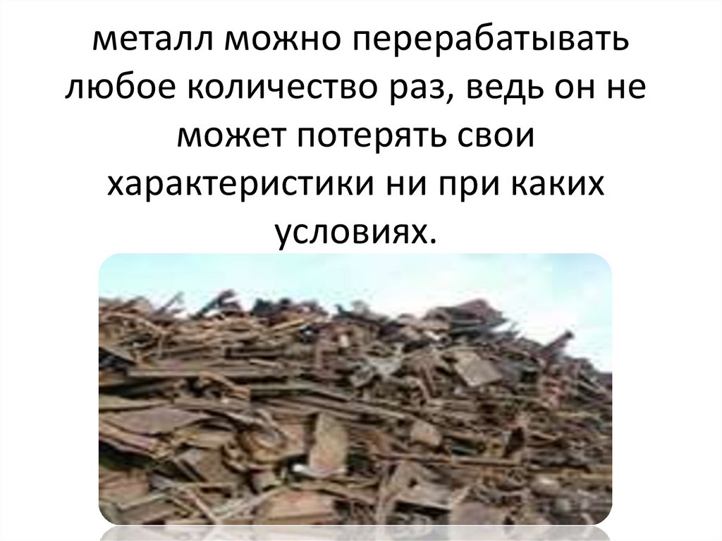 металл можно перерабатыватьлюбое количество раз, ведь он не