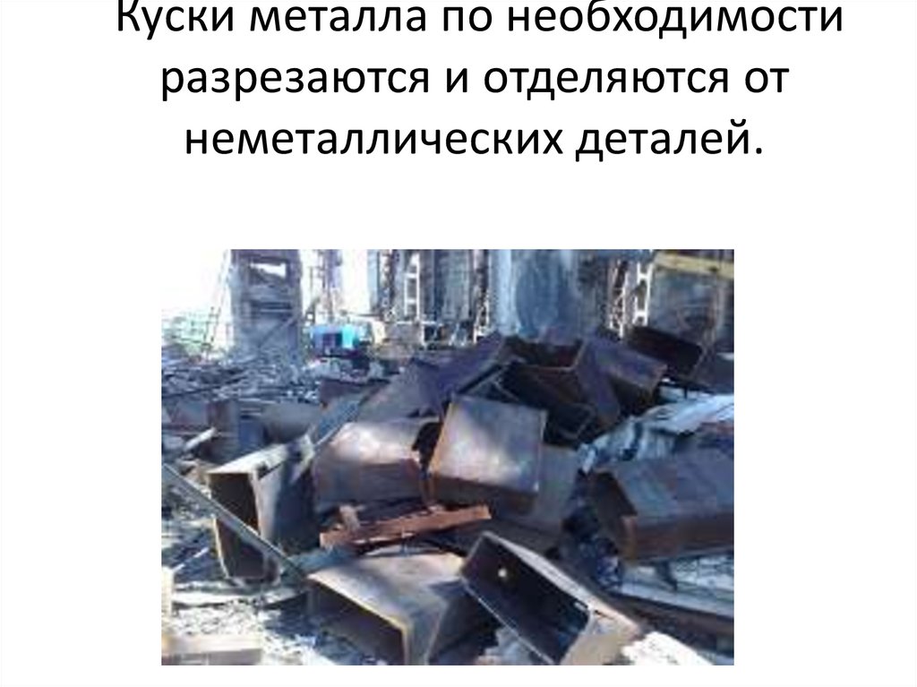 По прибытию на пункт приемаметаллолома весь груз сортируется.