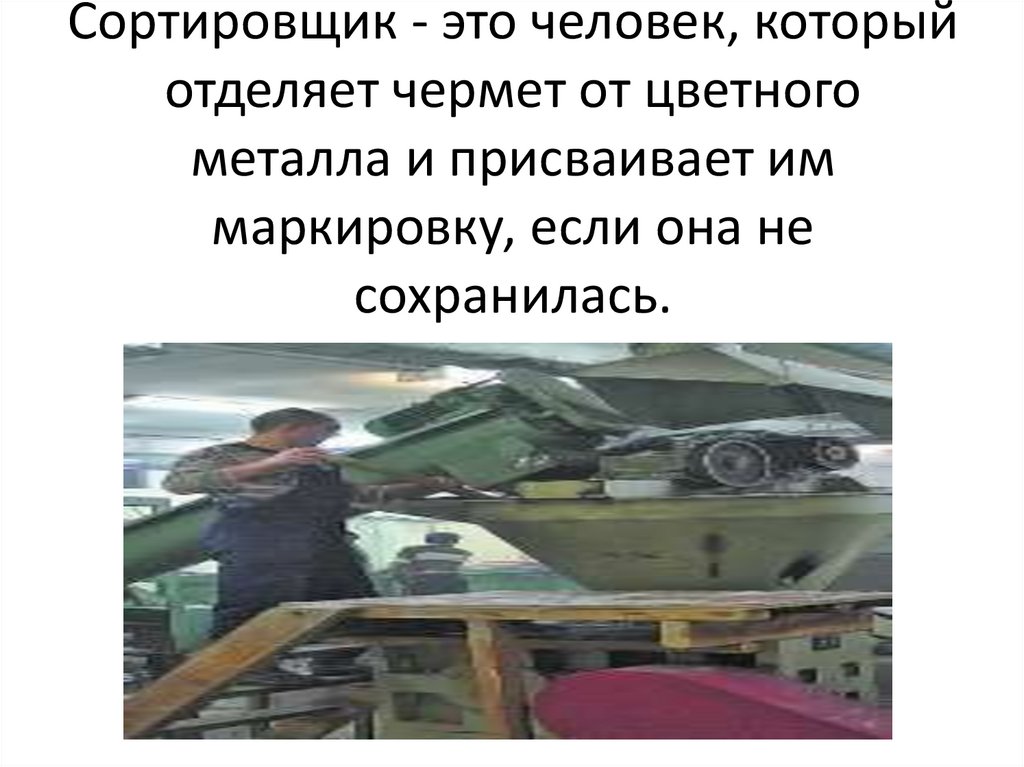 Сортировщик - это человек, которыйотделяет чермет от цветного
