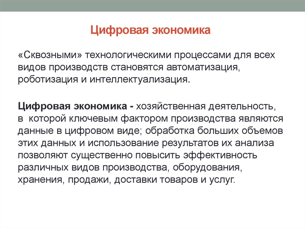 Цифровая экономика«Сквозными» технологическими процессами для всех