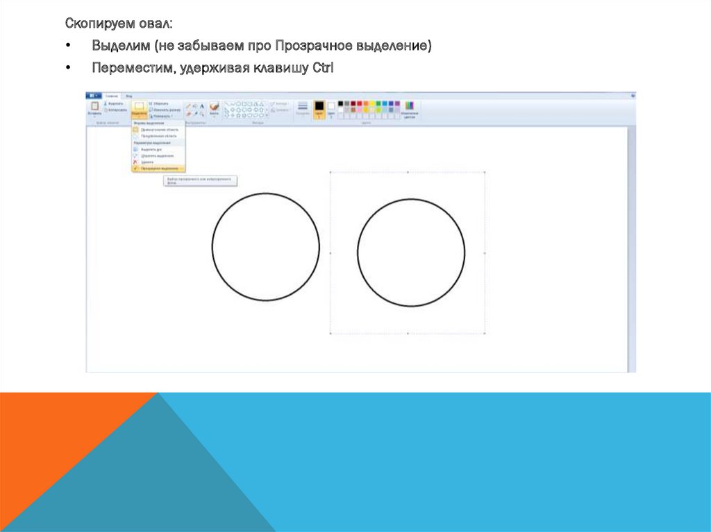 Скопируем овал:• Выделим (не забываем про Прозрачное выделение)