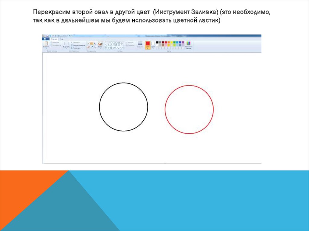 Перекрасим второй овал в другой цвет (Инструмент Заливка) (это необходимо,так как в дальнейшем мы будем использовать цветной ластик)