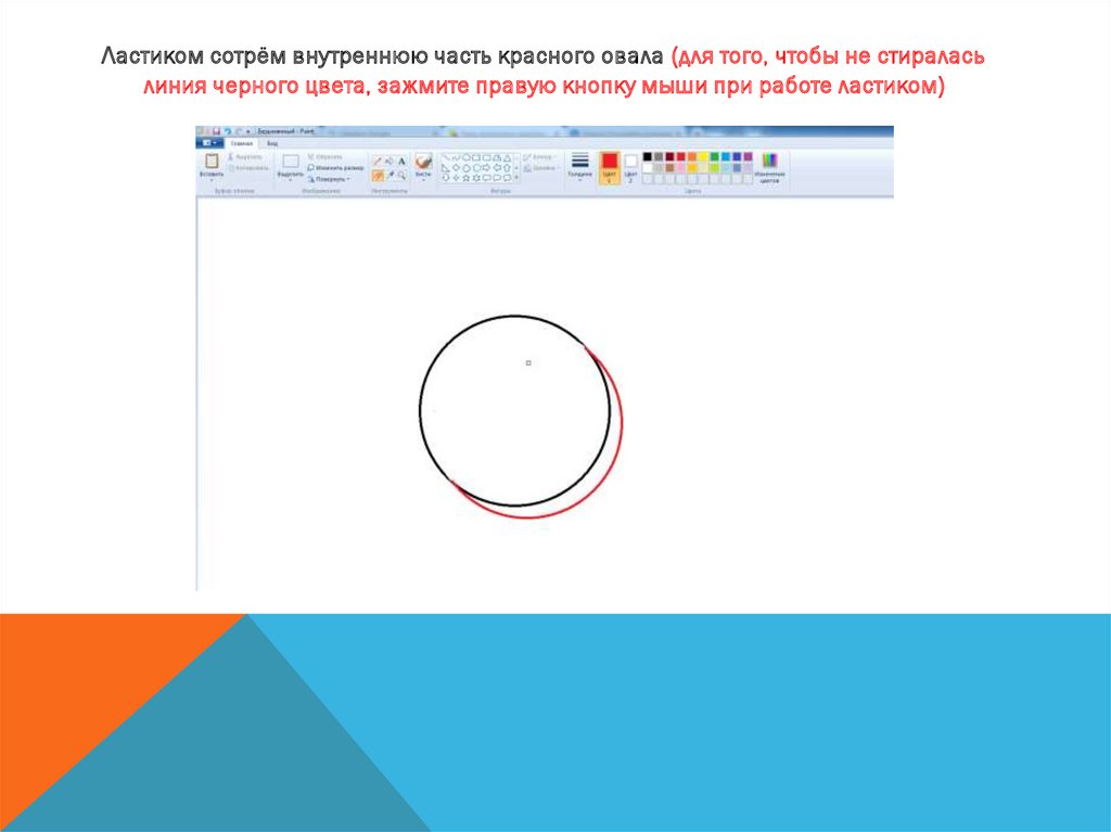 Ластиком сотрём внутреннюю часть красного овала (для того, чтобы не стираласьлиния черного цвета, зажмите правую кнопку мыши при работе ластиком)