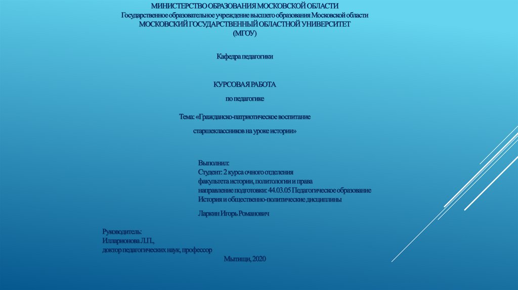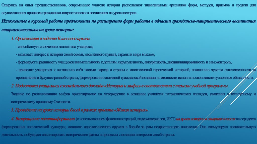 Гражданско-патристическое воспитание старшеклассников на уроке истории