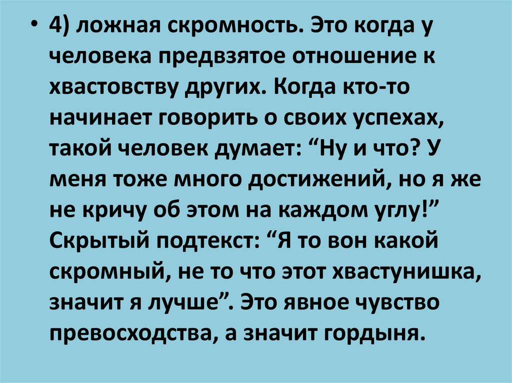• 4) ложная скромность. Это когда учеловека предвзятое отношение к