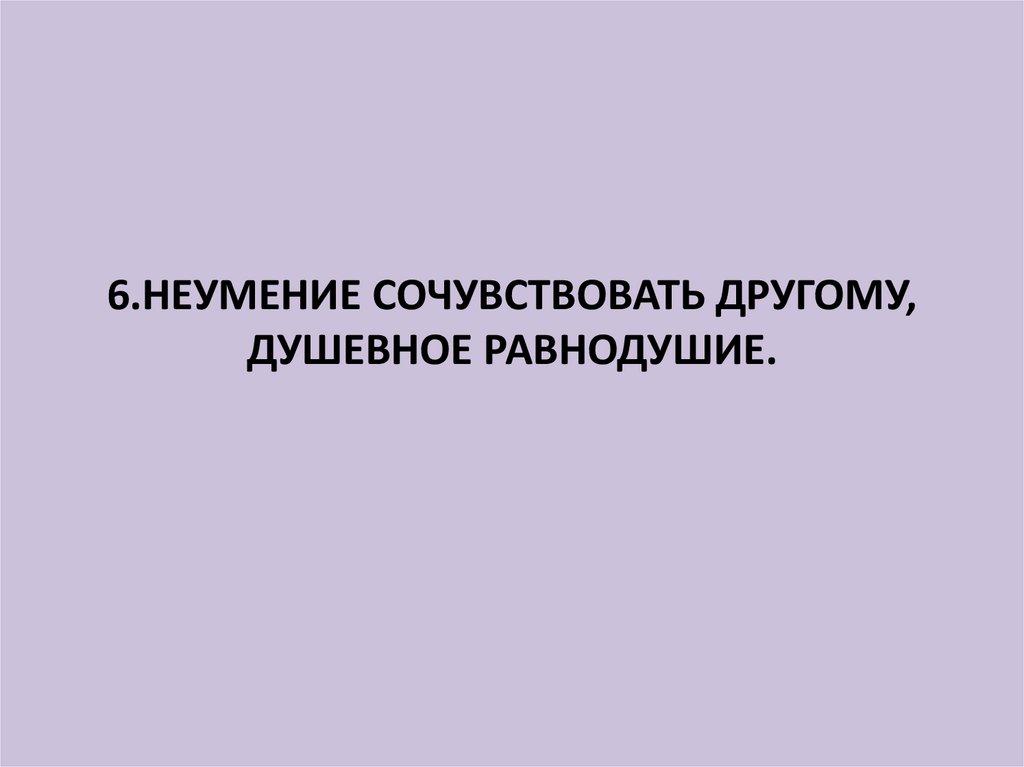 6.НЕУМЕНИЕ СОЧУВСТВОВАТЬ ДРУГОМУ,ДУШЕВНОЕ РАВНОДУШИЕ.
