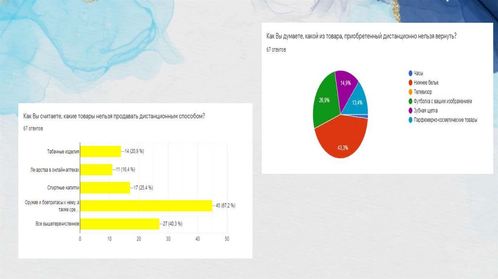 Таким образом, можно сделать вывод, что у опрошенных граждан наблюдаютсясомнения в знаниях при определении товаров, которые нельзя продавать