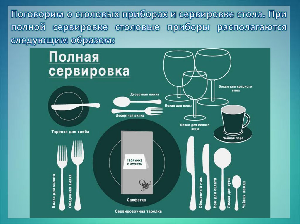 Столовый этикет. Правила поведения за столом. Сервировка стола