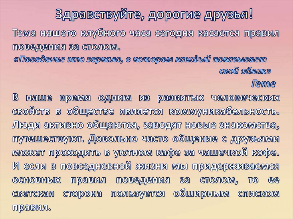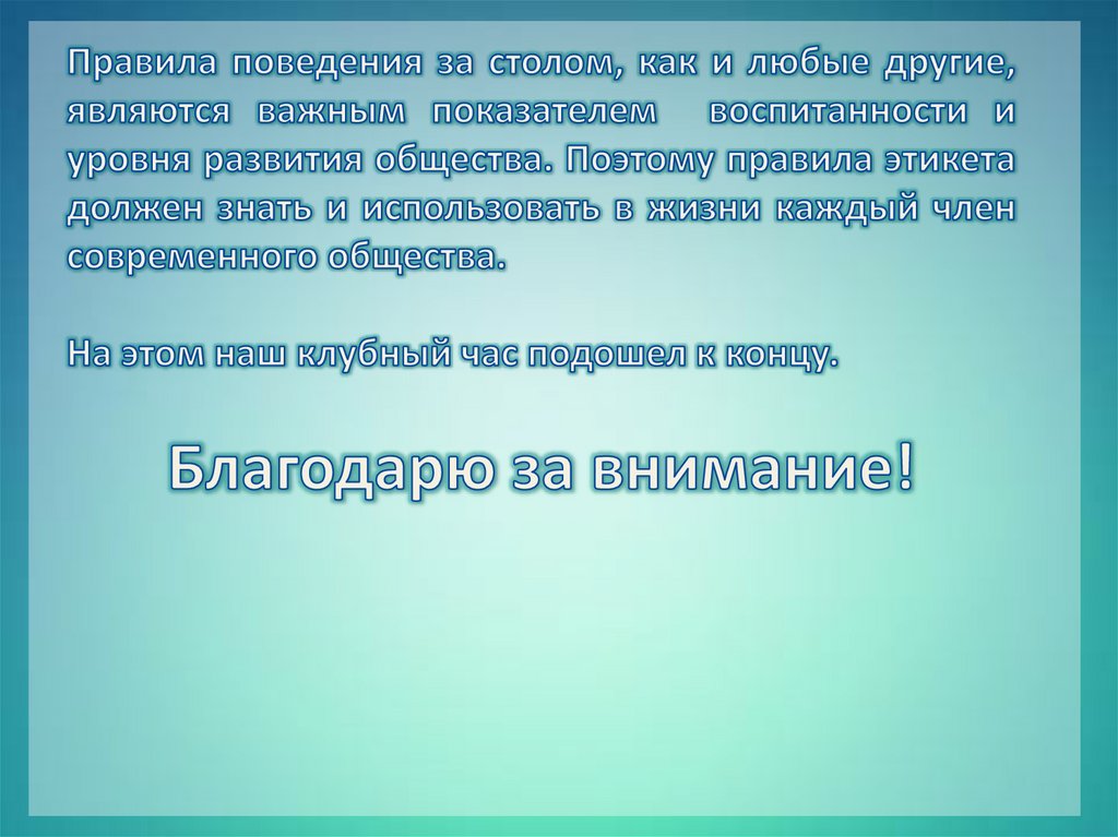 Клубный час «Как вести себя за столом? Основы столового этикета»