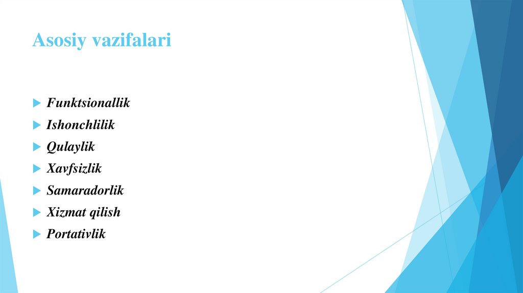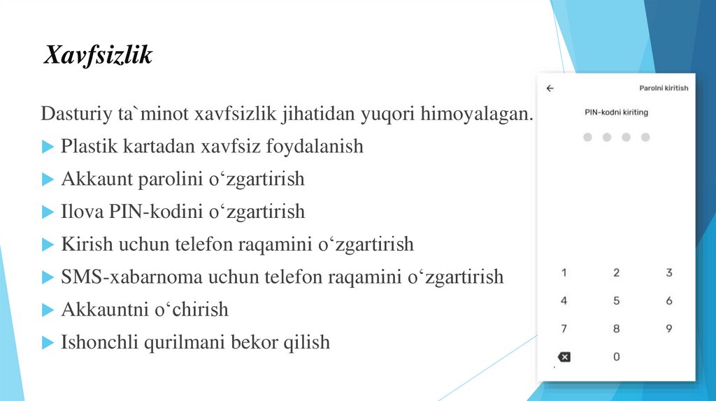XavfsizlikDasturiy ta`minot xavfsizlik jihatidan yuqori himoyalagan.