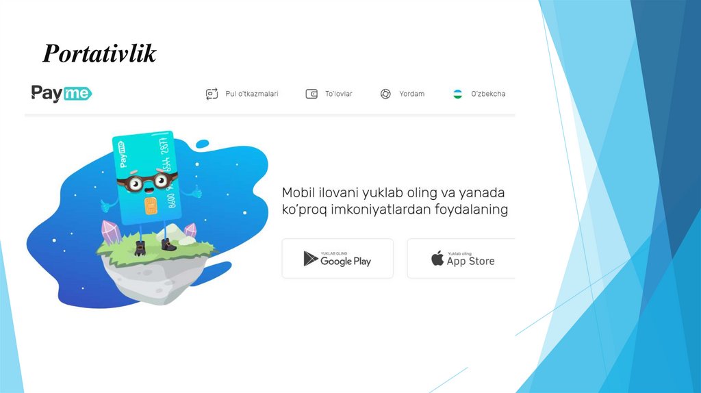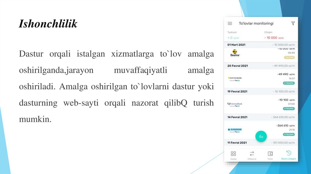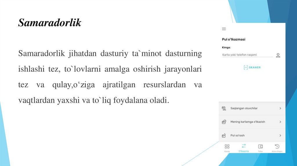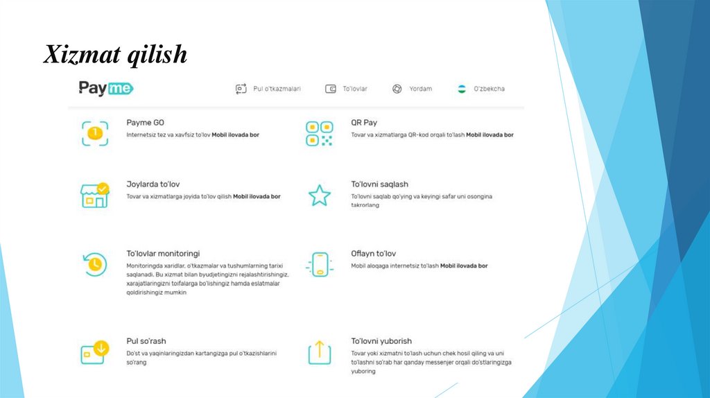 ishlashi tez, to`lovlarni amalga oshirish jarayonlari
