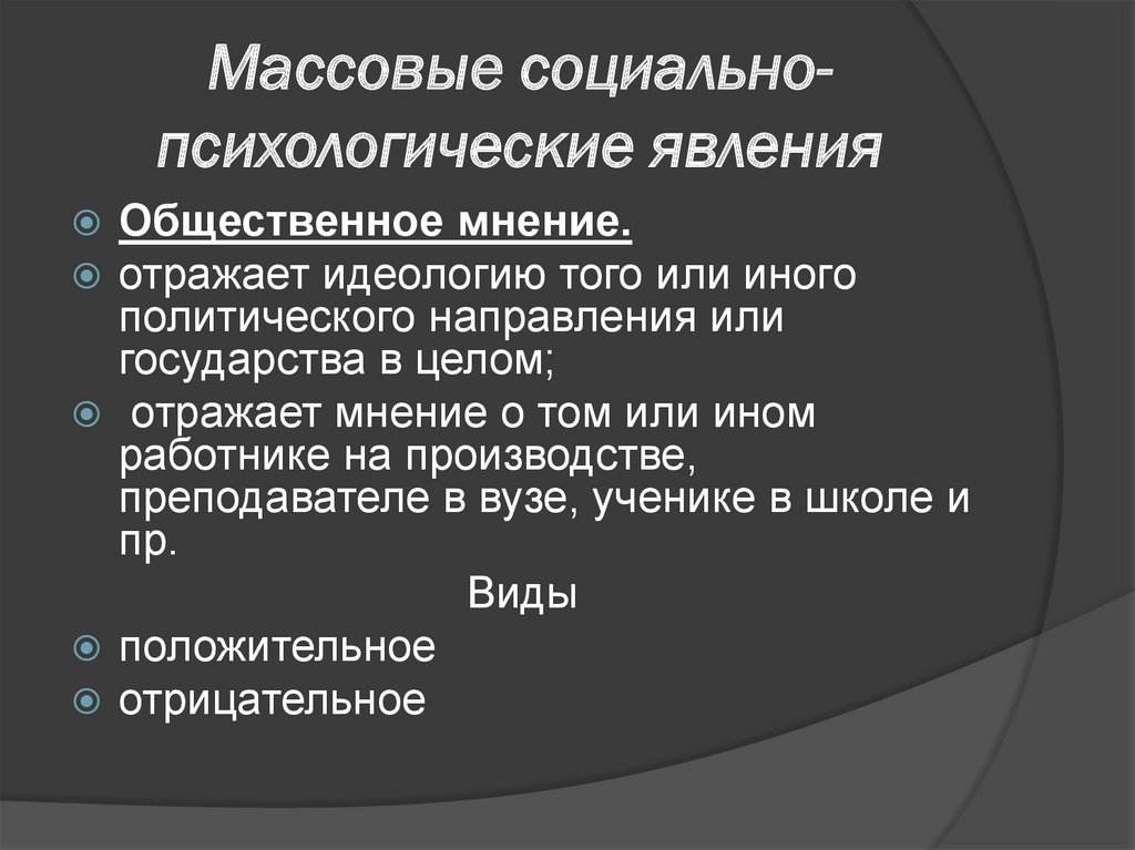 Массовые социальнопсихологические явленияОбщественное мнение.