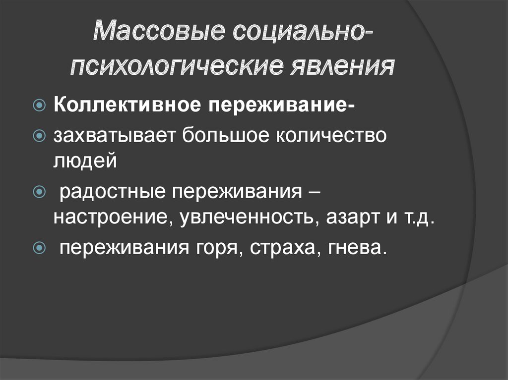 Массовые социальнопсихологические явленияКоллективное переживание захватывает большое количество