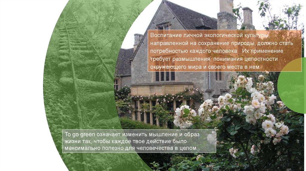 Воспитание личной экологической культуры,направленной на сохранение природы, должно стать
