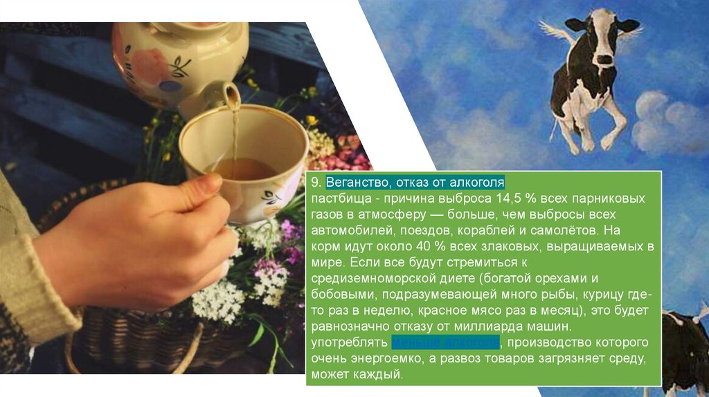 9. Веганство, отказ от алкоголяпастбища - причина выброса 14,5 % всех парниковых