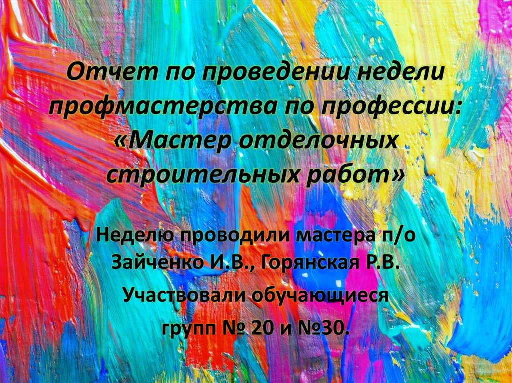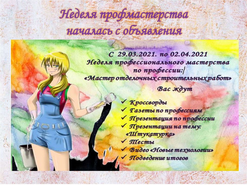 Отчет по проведению недели профмастерства по профессии «Мастер отделочных строительных работ»