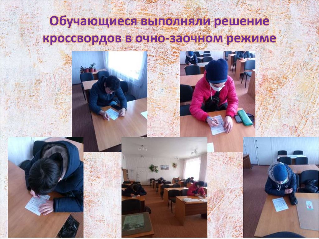 Обучающиеся выполняли решениекроссвордов в очно-заочном режиме