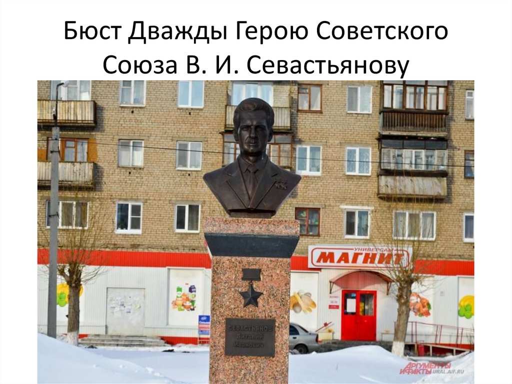 Бюст Дважды Герою СоветскогоСоюза В. И. Севастьянову