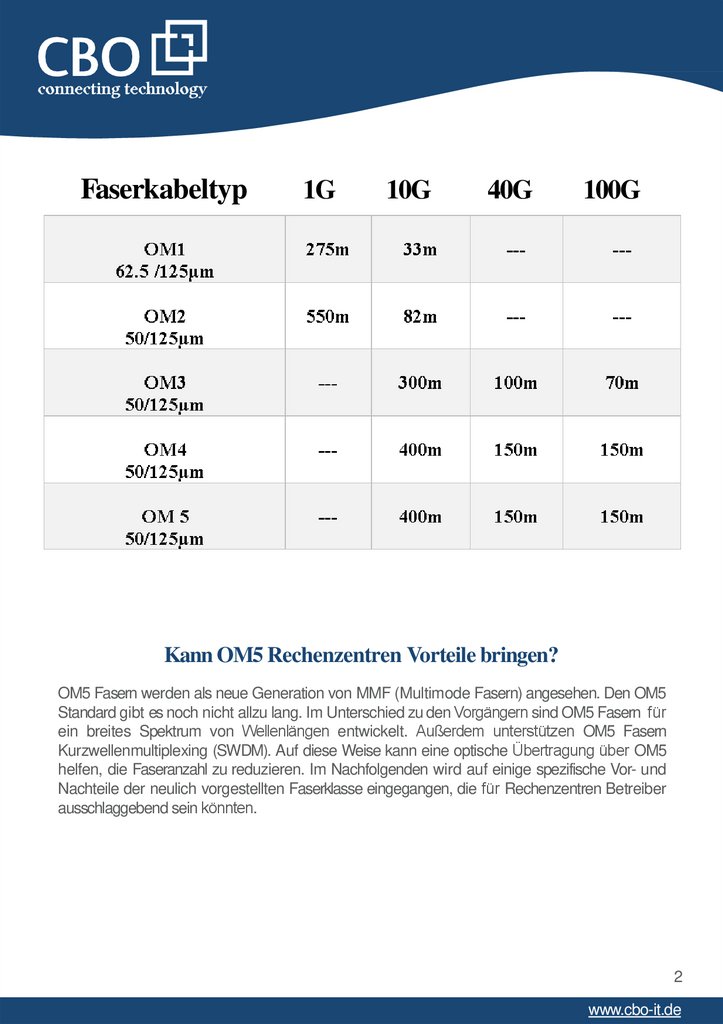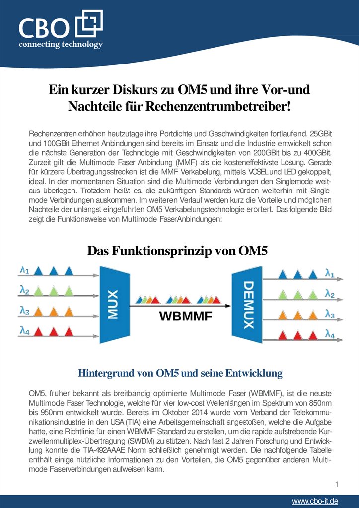 Was das angeht, bringt OM5 gewiss große Pluspunkte für Rechenzentren. Folgend die primären
