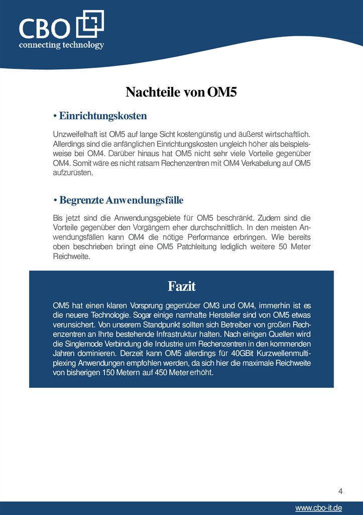 OM4. Somit wäre es nicht ratsam Rechenzentren mit OM4 Verkabelung auf OM5