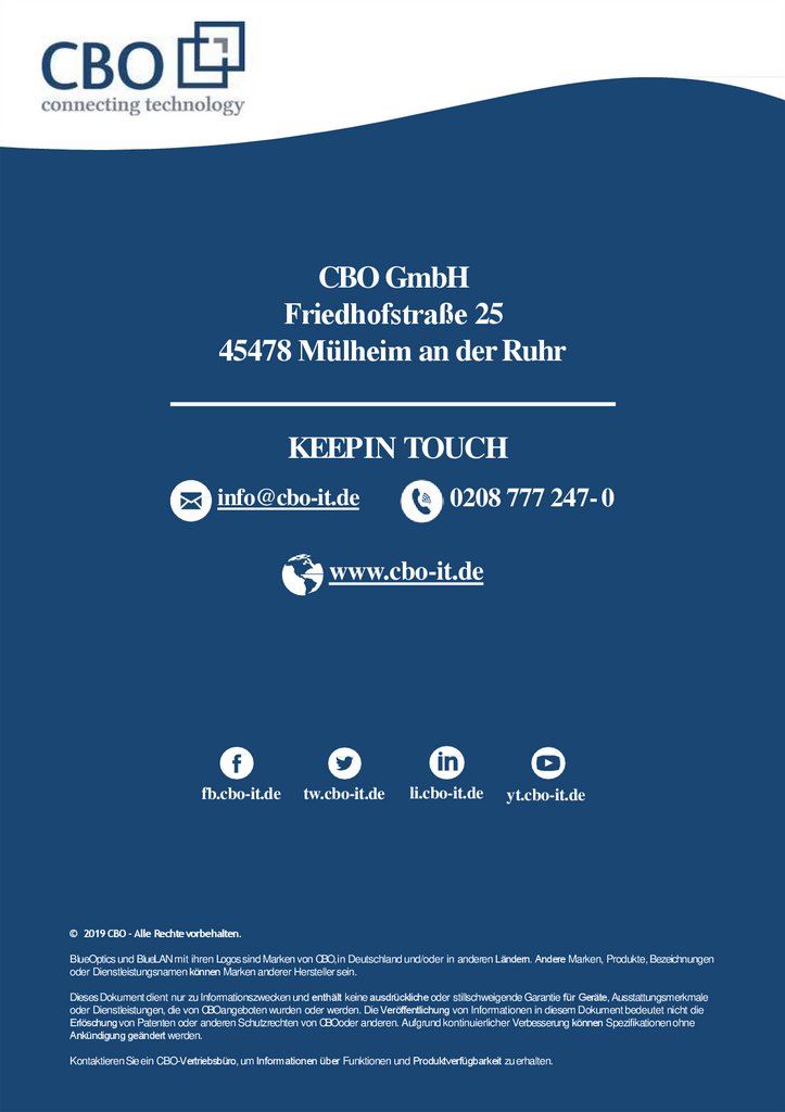 BlueOptics und BlueLAN mit ihren Logos sind Marken von CBO, in Deutschland und/oder in anderen Ländern. Andere Marken, Produkte, Bezeichnungen