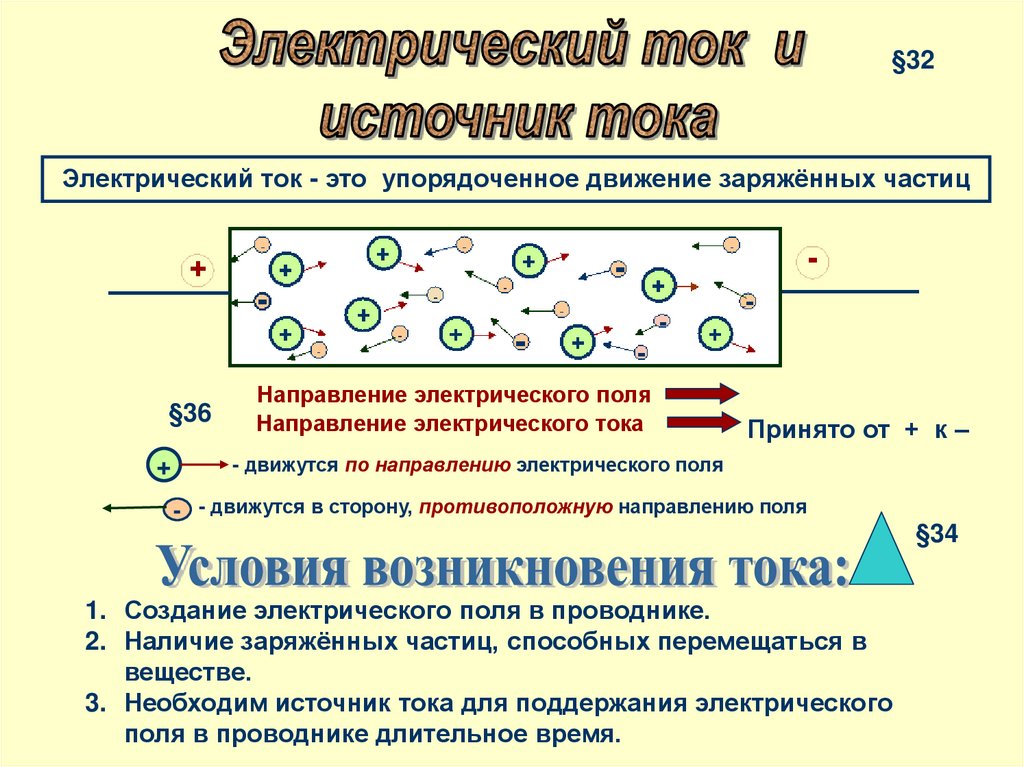 §32Электрический ток - это упорядоченное движение заряжённых частиц