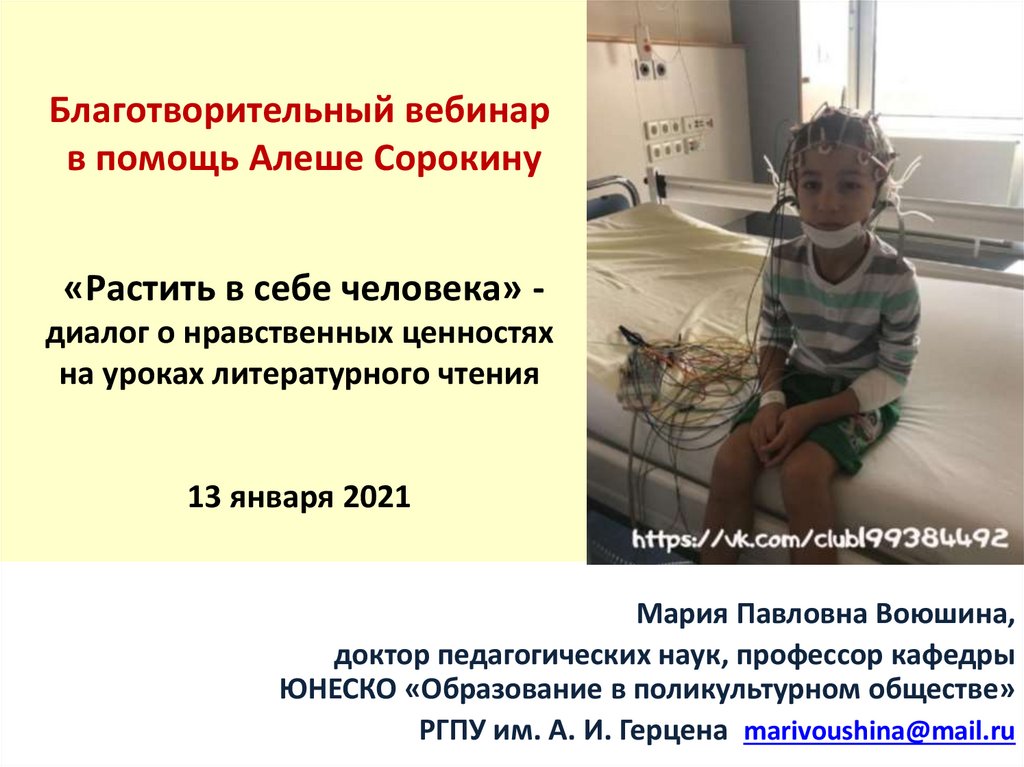 Благотворительный вебинар в помощь Алеше Сорокину «Растить в себе человека»