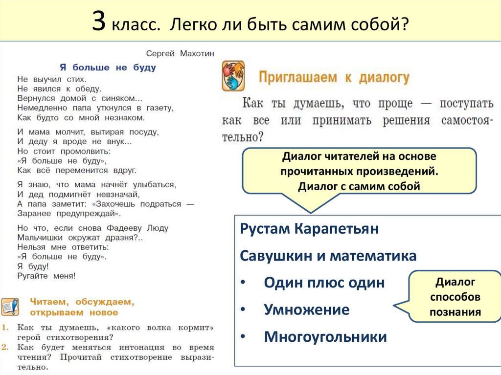 3 класс. Легко ли быть самим собой?Диалог читателей на основе