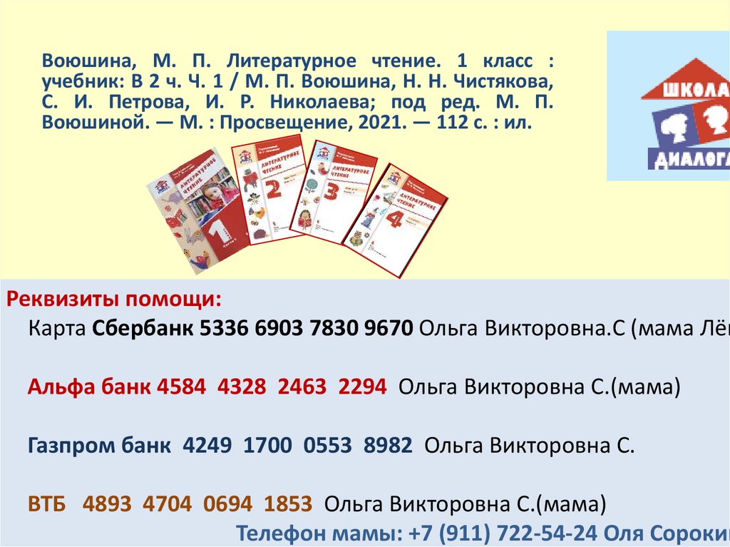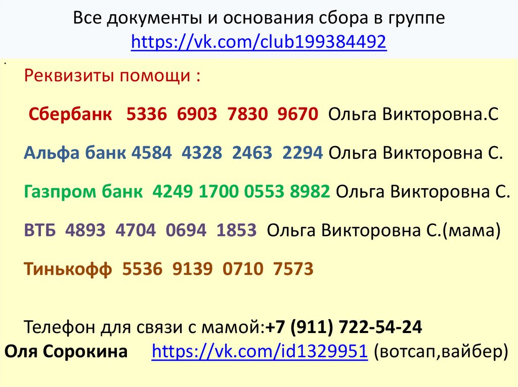 Альфа банк 4584 4328 2463 2294 Ольга Викторовна С.(мама)