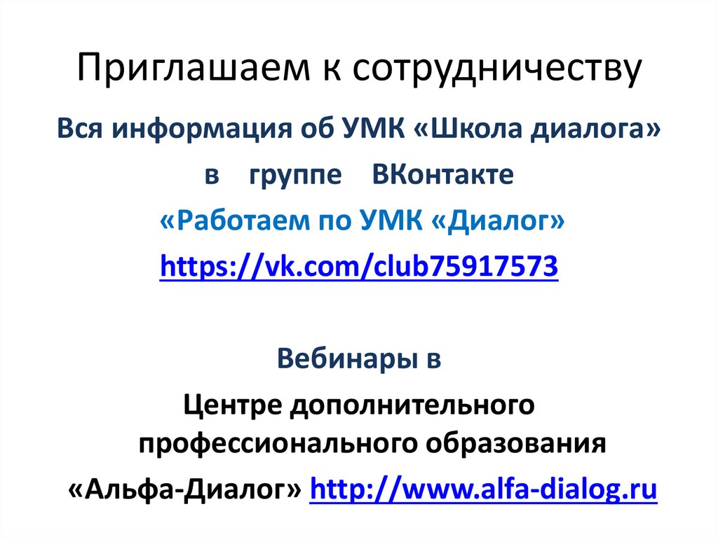 Приглашаем к сотрудничествуВся информация об УМК «Школа диалога»