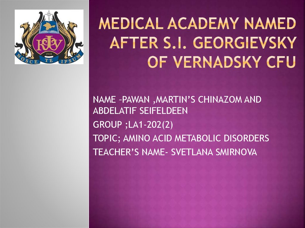 TOPIC; AMINO ACID METABOLIC DISORDERS