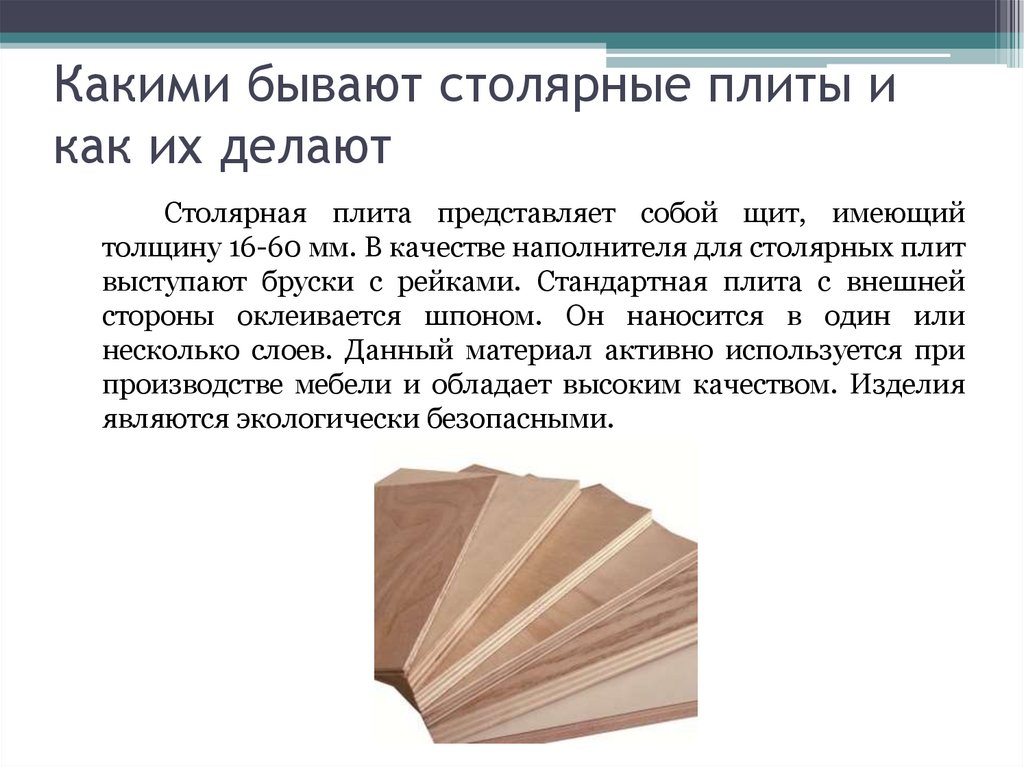 толщину 16-60 мм. В качестве наполнителя для столярных плит