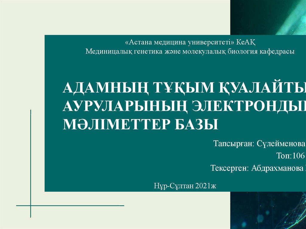 «Астана медицина университеті» КеАҚМединицалық генетика және молекулалық биология кафедрасы