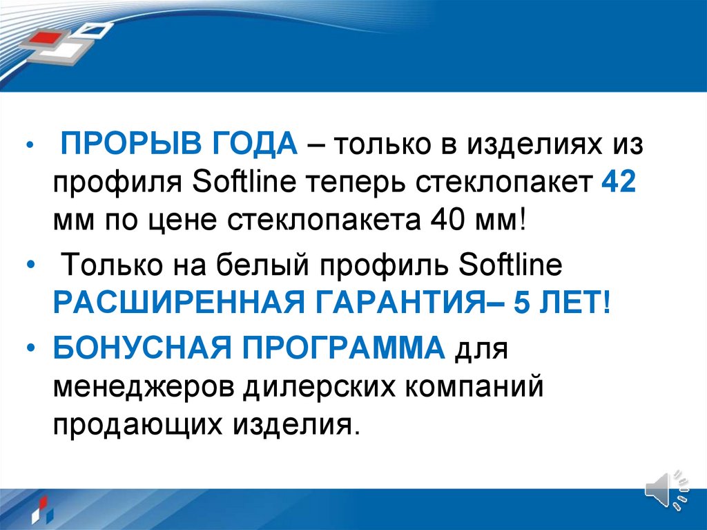 • ПРОРЫВ ГОДА – только в изделиях изпрофиля Softline теперь стеклопакет 42