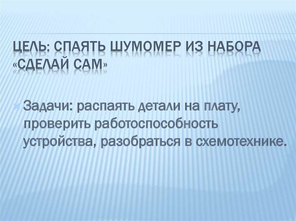 ЦЕЛЬ: СПАЯТЬ ШУМОМЕР ИЗ НАБОРА«СДЕЛАЙ САМ»