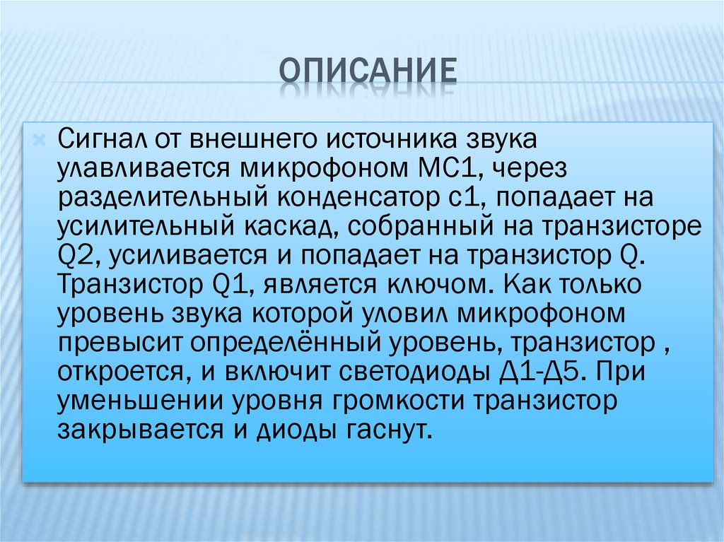 ОПИСАНИЕСигнал от внешнего источника звука