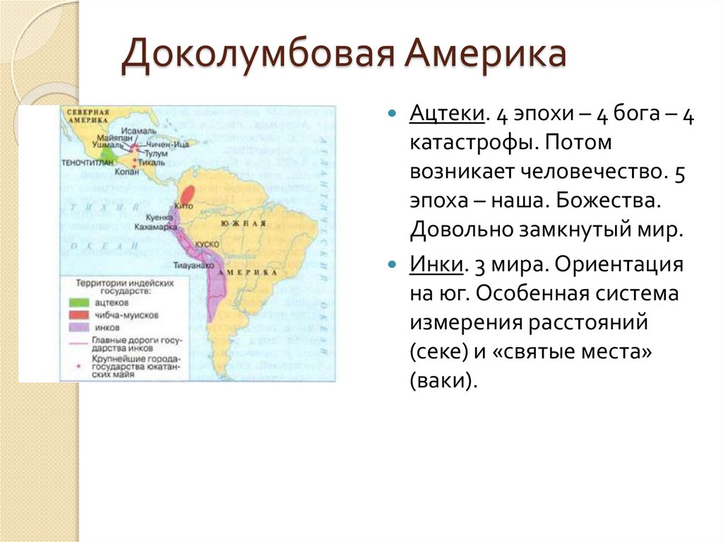 Доколумбовая АмерикаАцтеки. 4 эпохи – 4 бога – 4