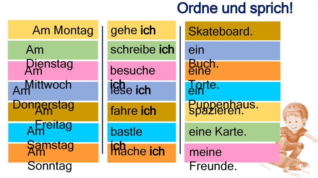 Ordne und sprich!Am Montag