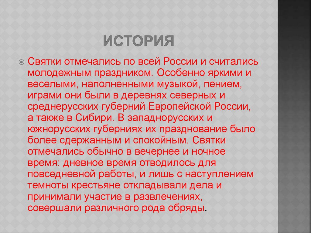 Святки отмечались по всей России и считалисьмолодежным праздником. Особенно яркими и