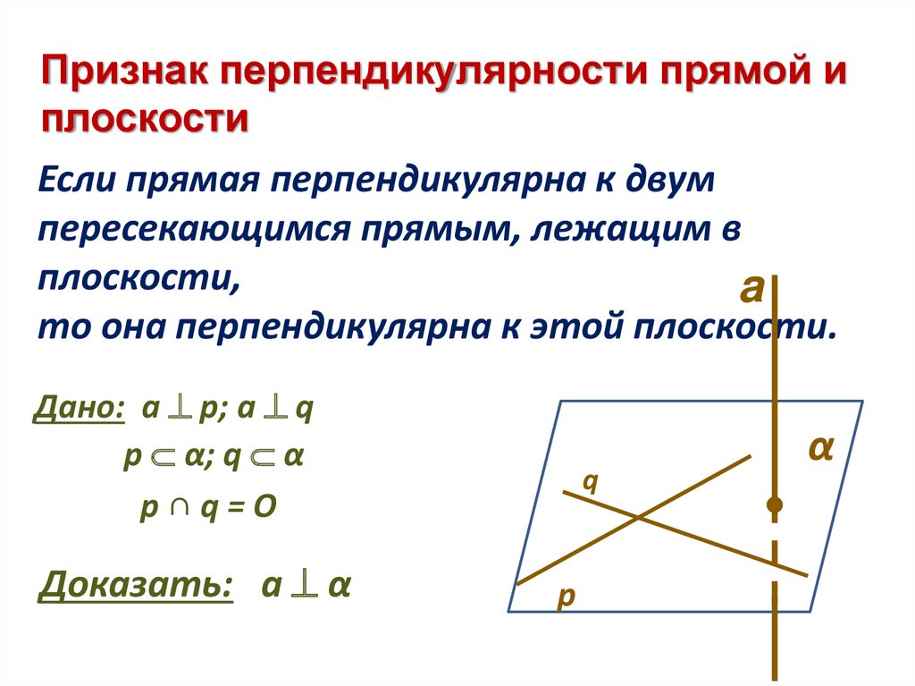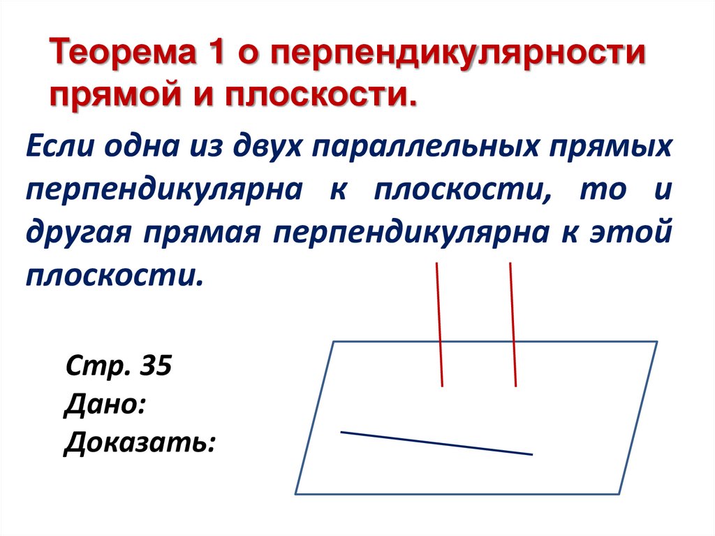 Теорема 1 о перпендикулярностипрямой и плоскости.