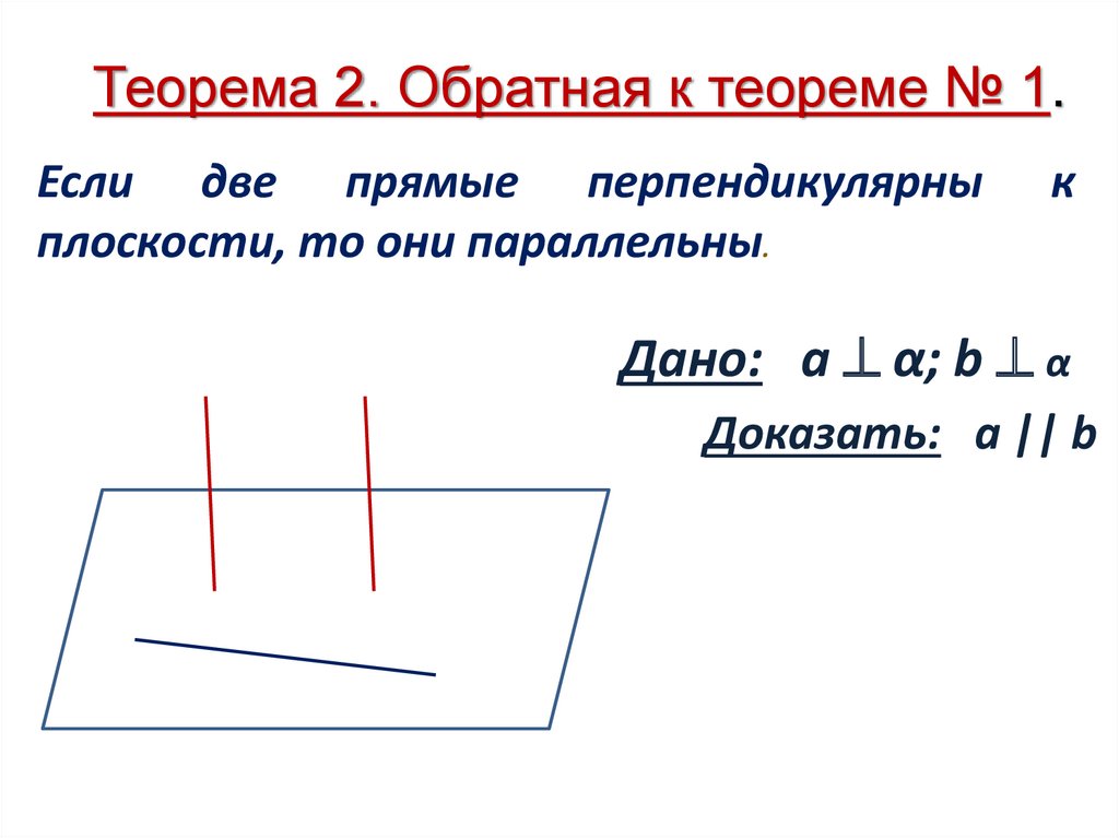 Теорема 2. Обратная к теореме № 1.Если две прямые перпендикулярны