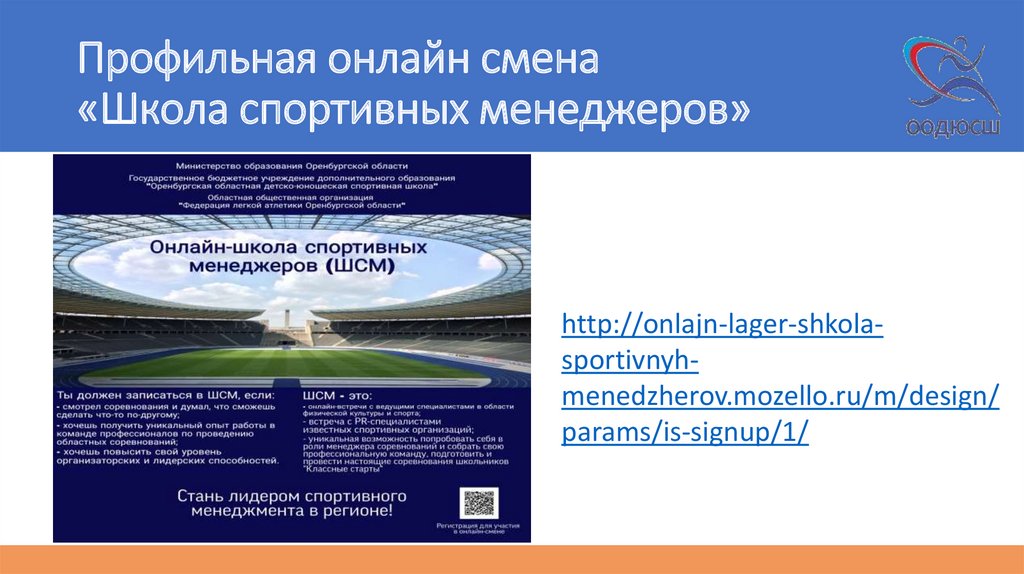 Профильная онлайн смена«Школа спортивных менеджеров»