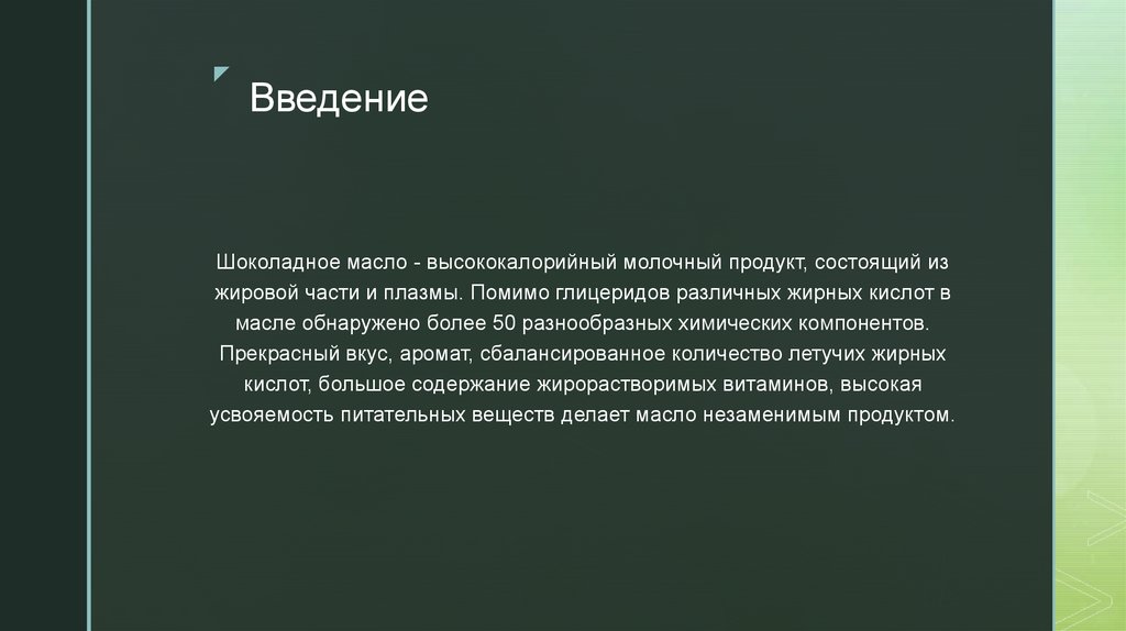 характерный для шоколадного масла, хорошей усвояемостью и сравнительно