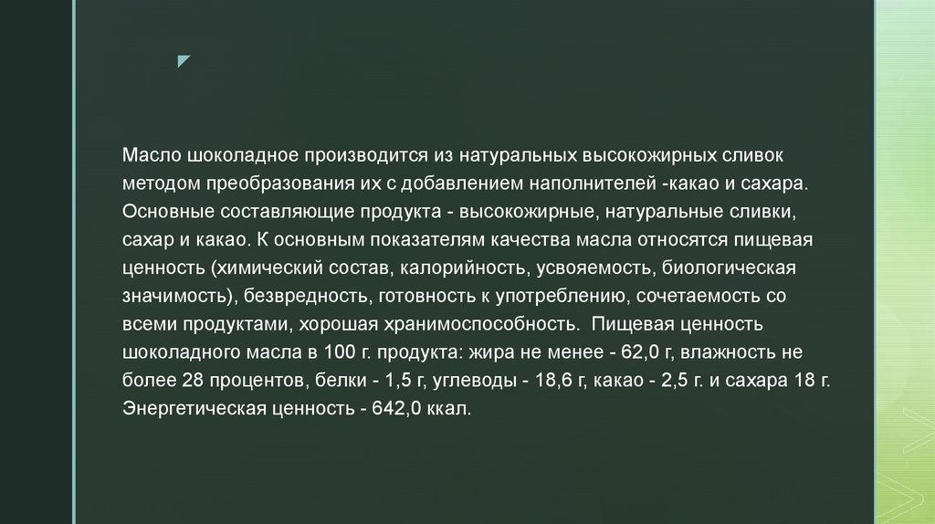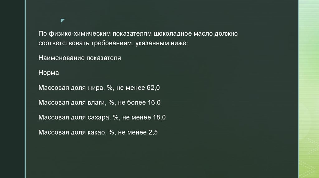 zПо физико-химическим показателям шоколадное масло должно