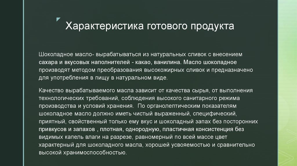 zХарактеристика готового продукта