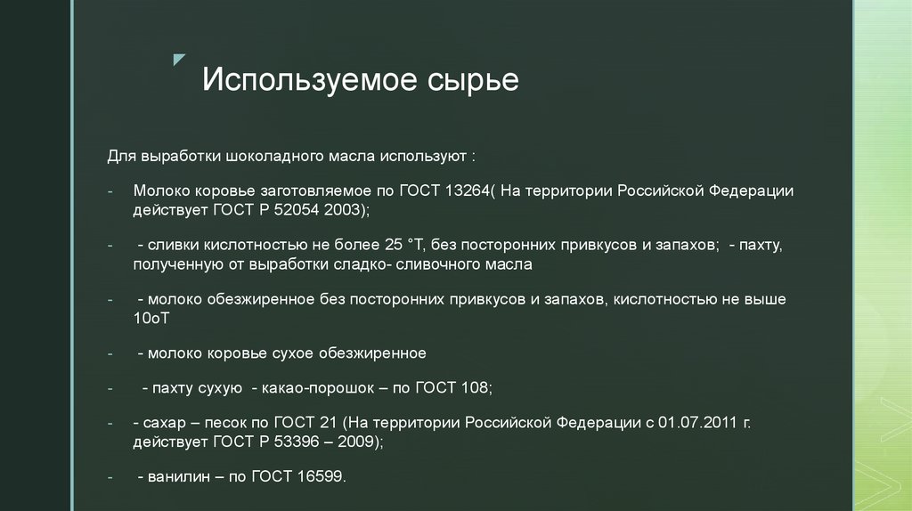 zИспользуемое сырье